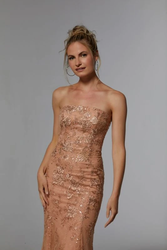 Mori Lee MGNY 72936 Straight Neck Floral Embroidered Evening Gown