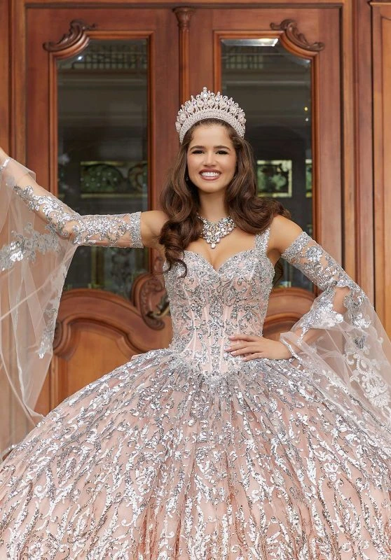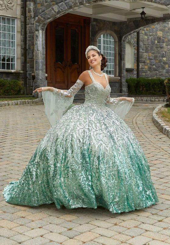 Mori Lee Vizcaya 89401 Detachable Sleeve Ombre Sequin Quinceanera Gown