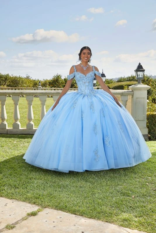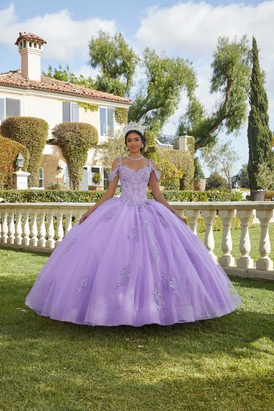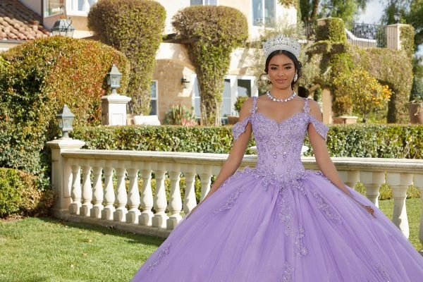 Mori Lee Vizcaya 89422 Cold Shoulder Lace Bodice Quince Gown