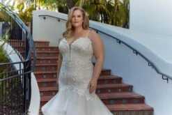 Mori Lee 3396 Lianne Front Slit Lace Bodice Plus Size Wedding Gown