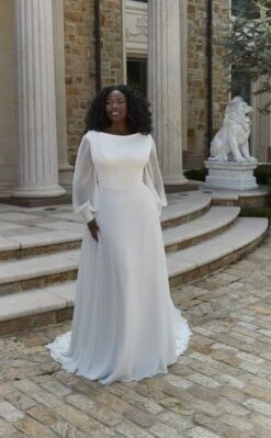 Mori Lee 3395 Lenora Removable Sleeve Open Back Plus Size Wedding Gown