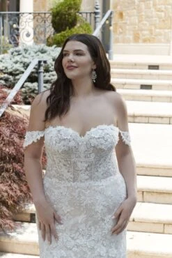 Mori Lee 3399 Luna Sheer Top Off The Shoulder Plus Size Bridal Dress